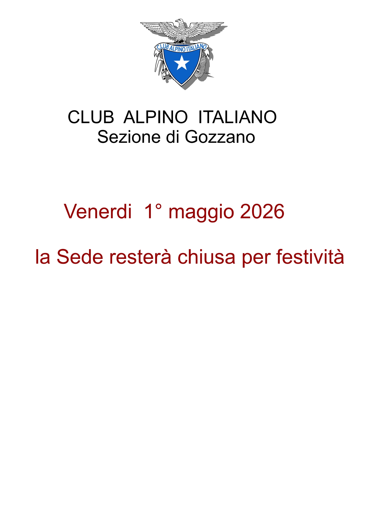 AVVISO AI SOCI il 31 marzo scade il termine per il rinnovo delle quote sociali 2026 e per poter usufruire delle assicurazioni in attività sezionale. Invitiamo a voler rinnovare con sollecitudine perchè il valore della nostra associazione siete Voi soci. Vi aspettiamo ll venerdi in Sede oppure presso il negozio Ferramenta Ruga . Grazie